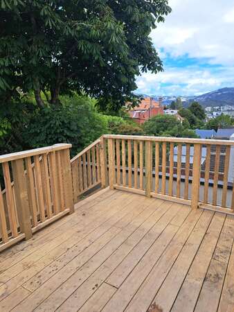 Upstairs there are 3 more double bedrooms, one of these has access onto the sunny deck. The bedroom overlooking the street is very big. There is a second bathroom upstairs.